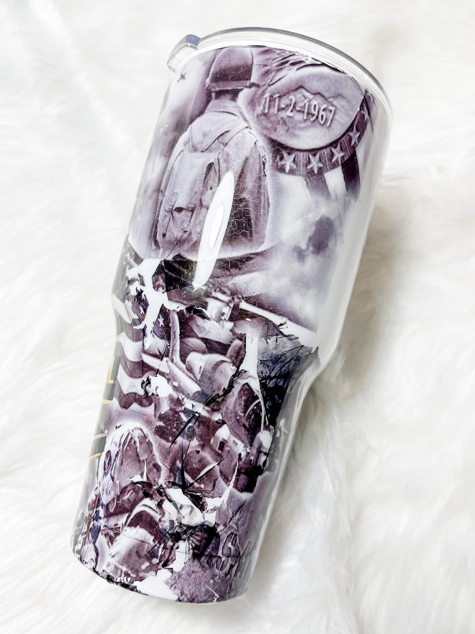 You will not receive this exact tumbler. It will be made in the same style using the same method but each tumbler will come out looking slightly different.